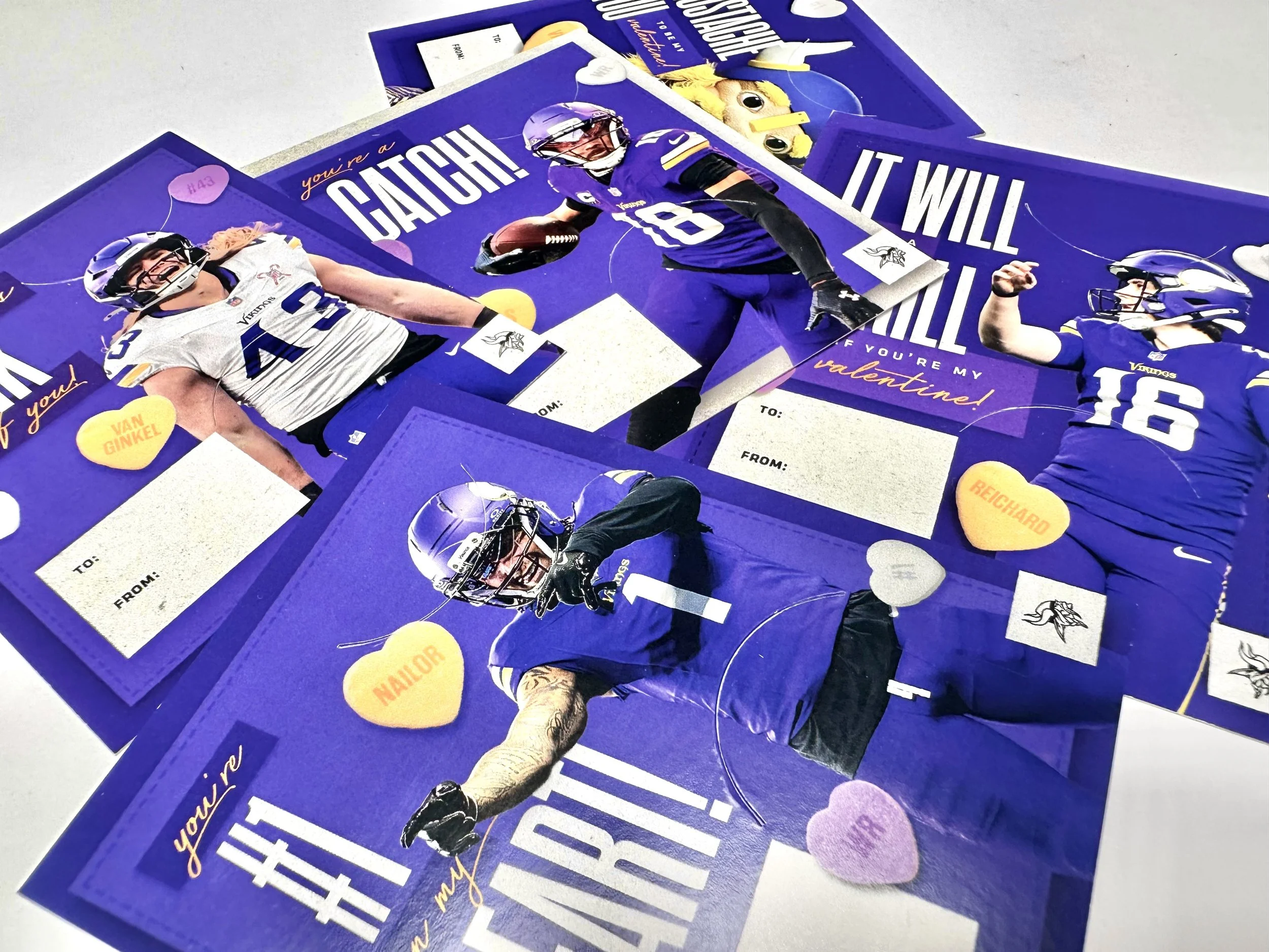 A series of Vikings themed Valentine’s candygrams were designed with player puns to give to kids at Children’s hospitals across the Twin Cities.